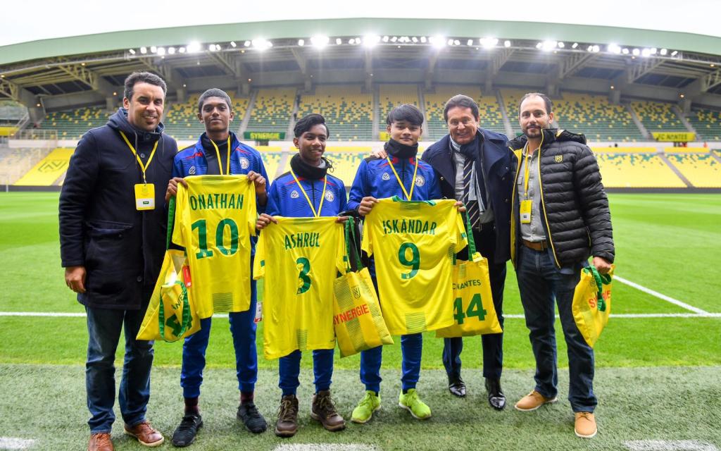 After training, the players were also invited to watch a live Ligue 1 match between FC Nantes and Saint-Étienne. When the players reached the stadium, the players were in for a real treat. Club president, Polish millionaire Waldemar Kita, met and greeted the players, but that was not all. He also had a present for the trio: an official FC Nantes jersey that had their names and favourite numbers printed on the back of the shirts. It was a surreal moment for the players when President Kita presented the jerseys to each of them, and they all agree that they will cherish the jerseys.