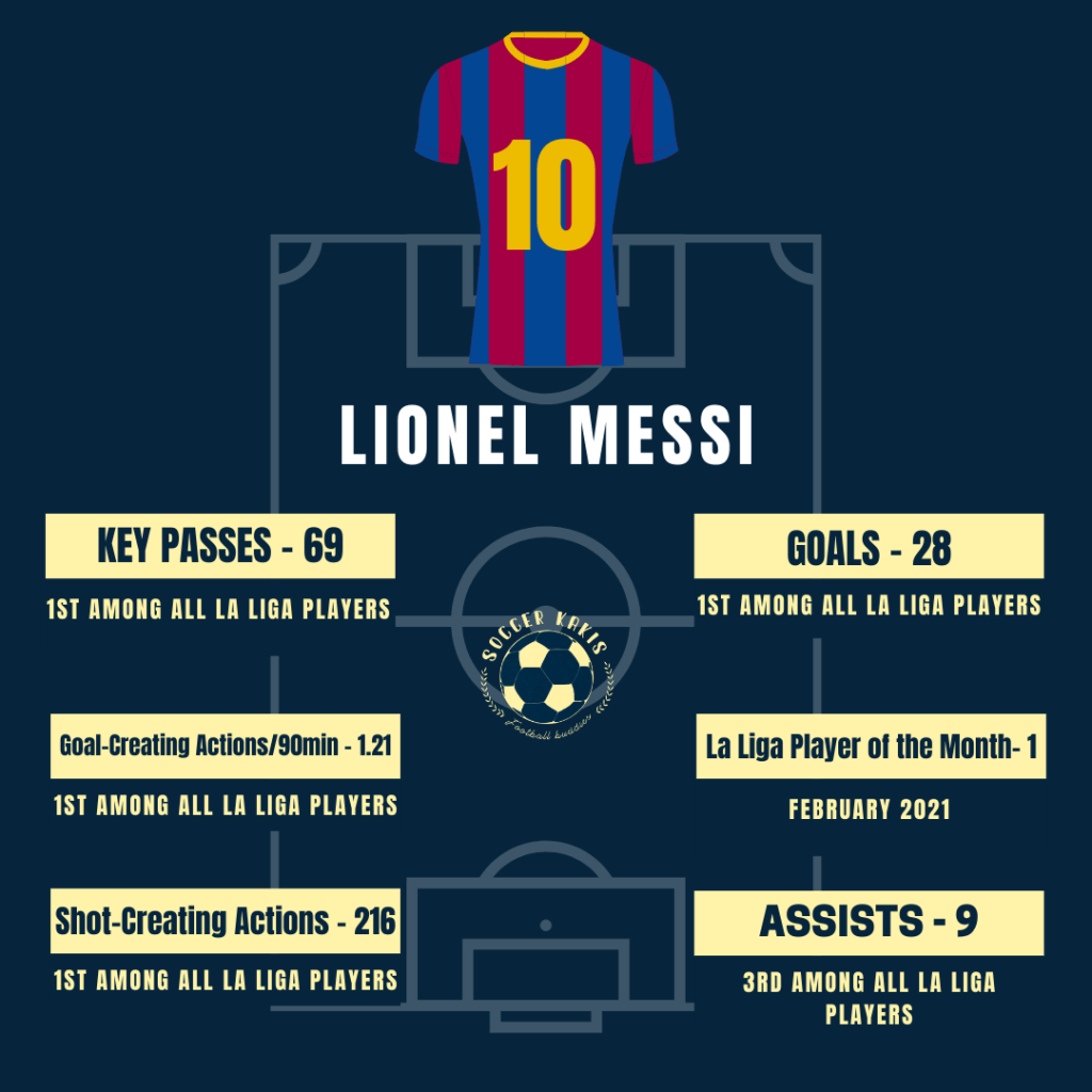 The stats do speak for themselves, really. The league’s leading scorer by a healthy margin, the third most creative player and not far behind first, and someone who is literally responsible for a goal every game he plays in. Everything happens through him. He is so efficient, so precise, and so deadly with the ball at his feet. He is directly responsible for nearly half of Barcelona’s league goals this season, and I would not be surprised if he had an indirect role in many more of them. Without him, Barcelona would not be where they are.