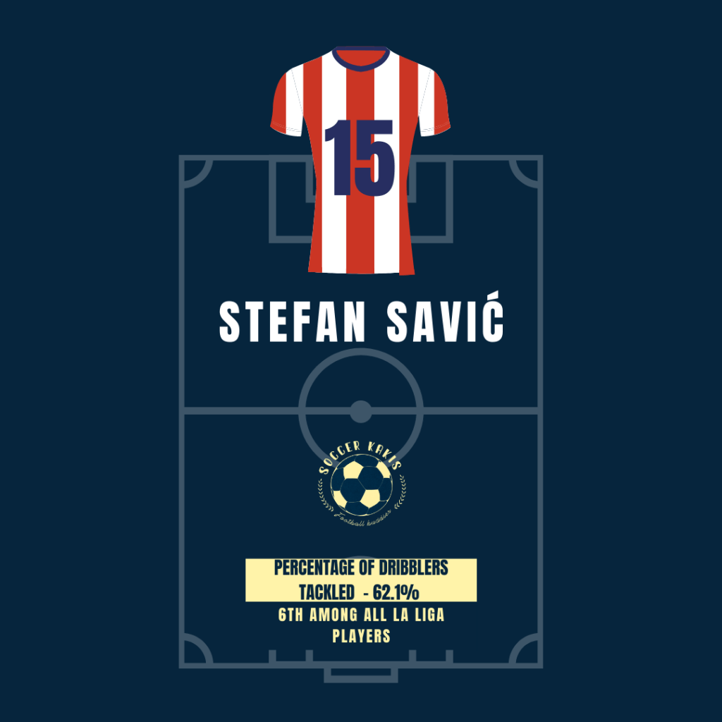 Choosing a defender, especially when weighed against an extra goalkeeper, was incredibly difficult. Lucas Vázquez and Kieran Trippier were deserving of recognition, as is Mario Hermoso, but I will choose to highlight Savić, who has been a tank for Atlético Madrid this season.