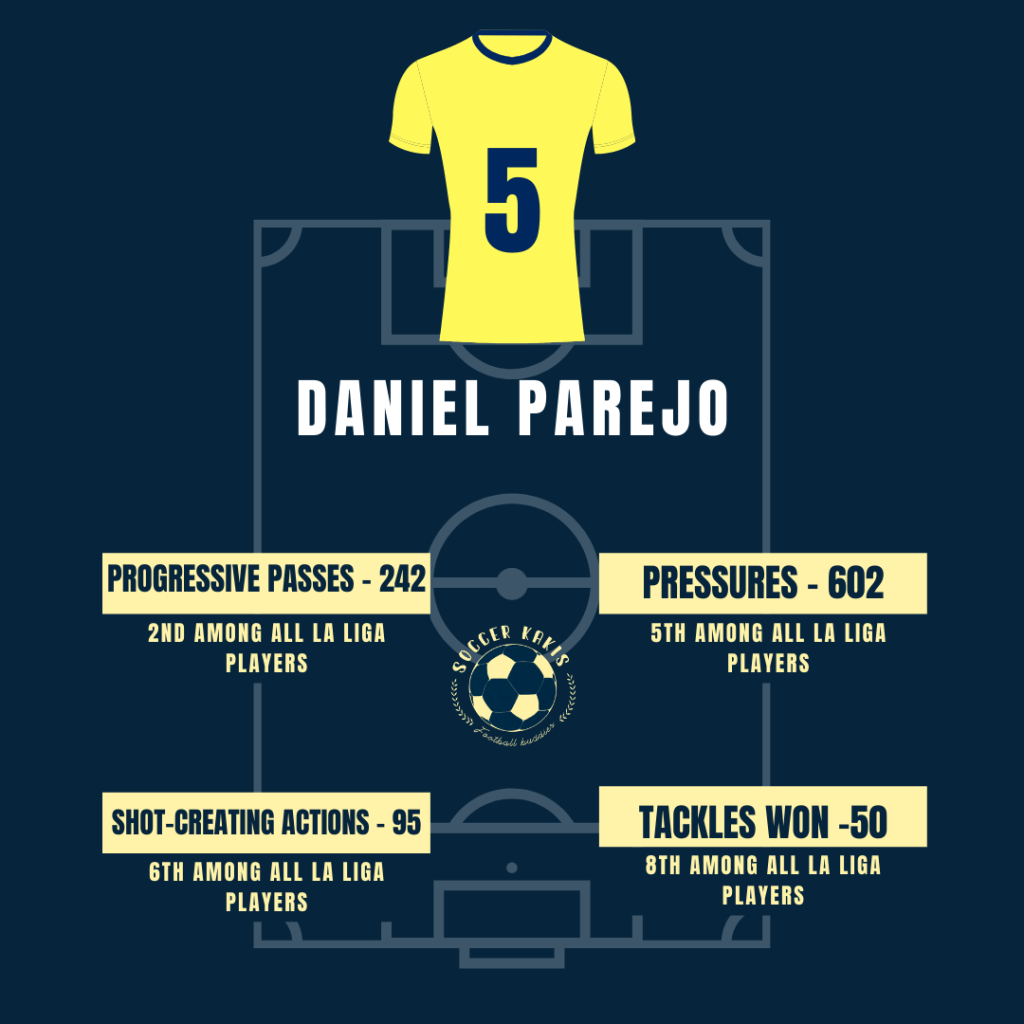 Dani Parejo has been a very unique player in his career, playing a very specific role in the midfield first for Valencia and now for Villarreal, but being so sought after and praised for being as good at that specific role as any player in the league. The stats I included sort of tell that story. He is a player that works in the base of the midfield, playing the passes and making sure everything is ticking while also being a sort of shield for the defense but not being the most defensive midfielder. He is very much like Jorginho at Chelsea, a player known for his passing and ability to run the show in midfield while not necessarily being athletic or asked to do quite a lot or cover a lot of ground.