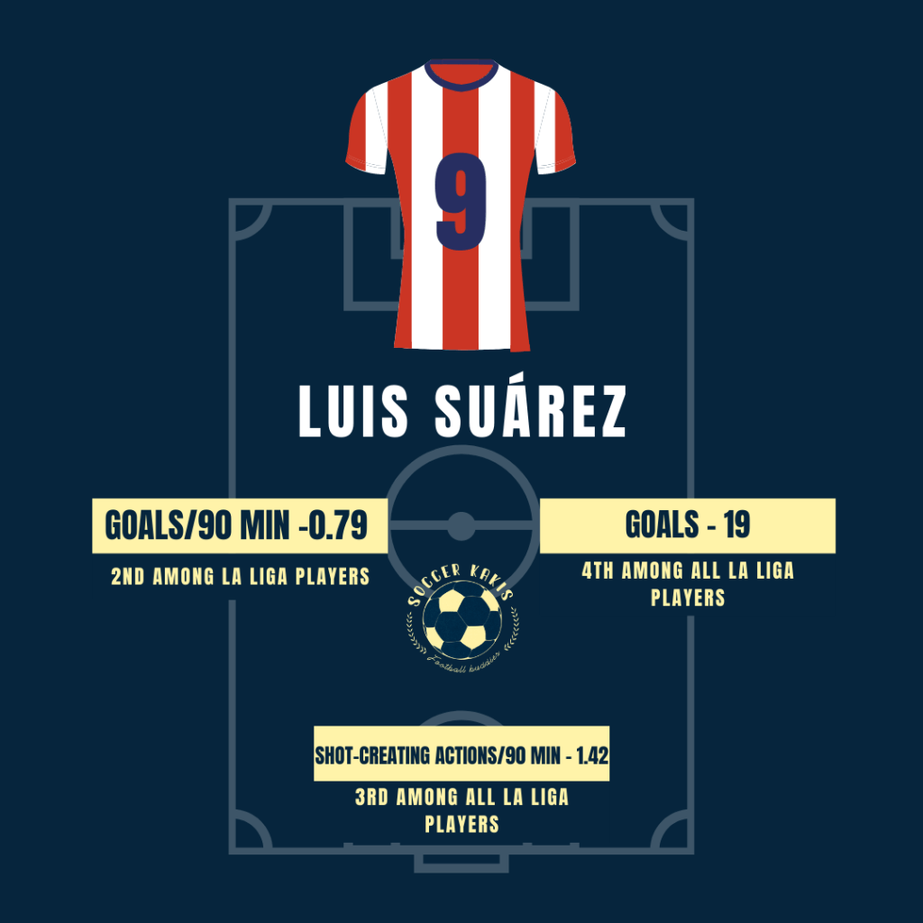 Suárez revitalized himself with Atléti, showing his decline while with Barcelona could be delayed at least for another season or two. His declining pace probably helped Atléti, as it encouraged Simeone to structure the team around rapid passing plays and attacks that start higher up the pitch rather than the long-ball heavy style that epitomized Cholismo in previous years. These higher attacks allowed other players in the team, namely João Félix, Thomas Lemar, Marcos Llorente, Ángel Correa, and Yannick Carrasco to enjoy much improved seasons, but it also allowed Suárez to show his still-very impressive technical ability that remains despite his age. He is still able to play on the ball, move off the ball, combine with attacking players, and finish at an incredible rate. Atléti allowed him to play to his strengths, and he definitely did.
