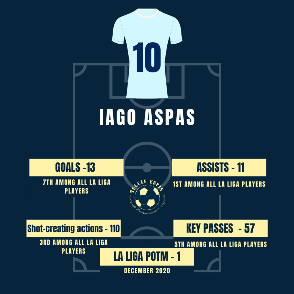 Iago Aspas is basically “Mr. Celta Vigo”. He has been the man that has almost-single handedly kept Celta in the top flight over the last few seasons. Despite playing for a fairly poor team, he has been among the top scorers in La Liga over the last few seasons, which is absurd. He has been less important this season than in recent years, given that Celta have improved and will likely finish mid-table at worst, but he has still been fantastic. Even in a season where Celta are not as reliant on Aspas, the Spaniard has still scored or assisted a little less than half of his team’s goals. He is usually also the highest scoring Spaniard in the league, or at least close, and while Gerard Moreno has blown by Aspas, the Galician striker has made up for it by currently leading the league in assists, having what is easily his best creative year of his career. The 32 year old veteran has reinvented himself, which you do not always hear. Choosing between him and Gerard Moreno for the starting team was tough, and while I do think I made the correct decision, Aspas deserves special mention here.