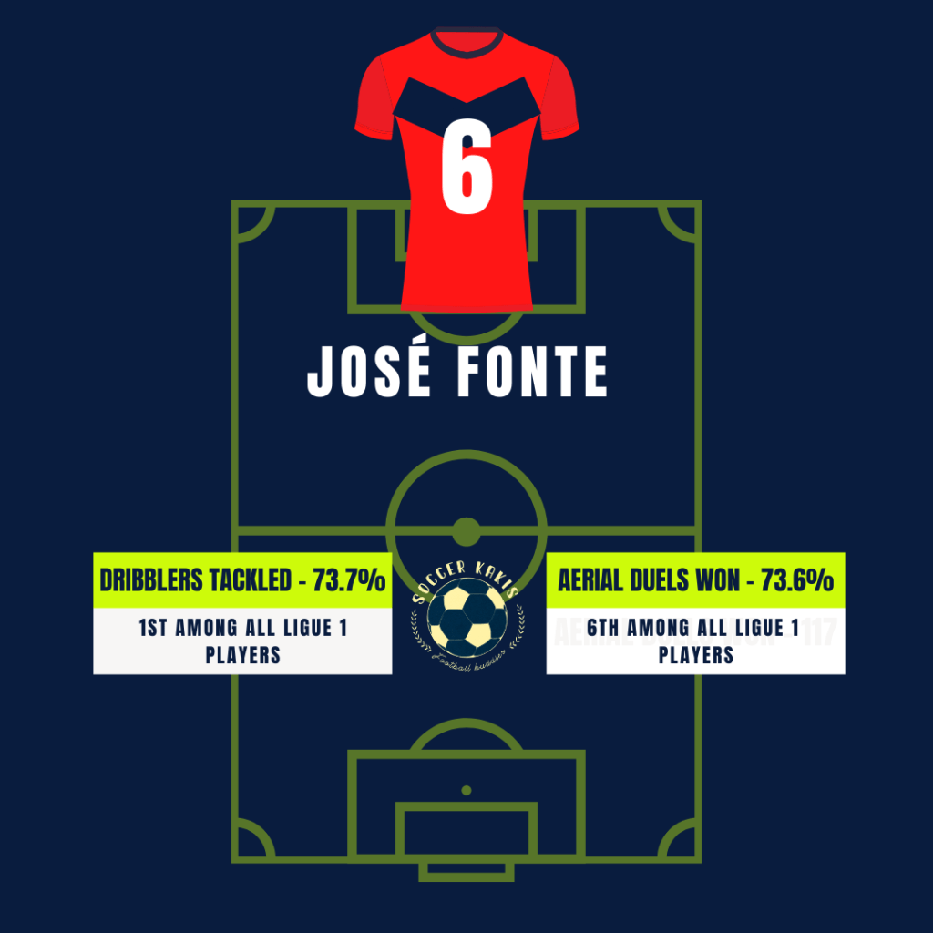 The Portuguese, after a very brief spell in China, signed with Lille in 2018, and he very quickly became a key player. Even at 37 years old, Fonte has been an irreplaceable player in his team. As Les Dogues’ captain, Fonte has been instrumental in organizing the Lille defense and leading by example. His experience has been important in mentoring his young defensive partners, Gabriel MagalhĂŁes last season and Sven Botman this season, and his very matured defensive intelligence has allowed him to be a very strong center back despite clearly losing a bit of physical ability and pace.
