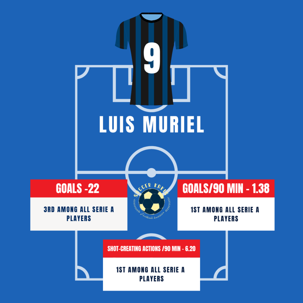Luis Muriel is Atalanta’s leading goalscorer this season, and he is also third among all goalscorers in Serie A this season. He did this while only playing 1,436 league minutes and making 36 appearances but only 16 starts. He played less minutes than two other Atalanta forwards (Duván Zapata and Josip Iličić), and he played less than half of the available league minutes this season while scoring the third-most amount of goals of any player in Serie A. That is a bit crazy, right? On average, he scored over a goal per 90 minutes, his exact statistical total being a little over 0.1 less than Robert Lewandowski’s also insane goals per 90 mins stat. Incredible, right?