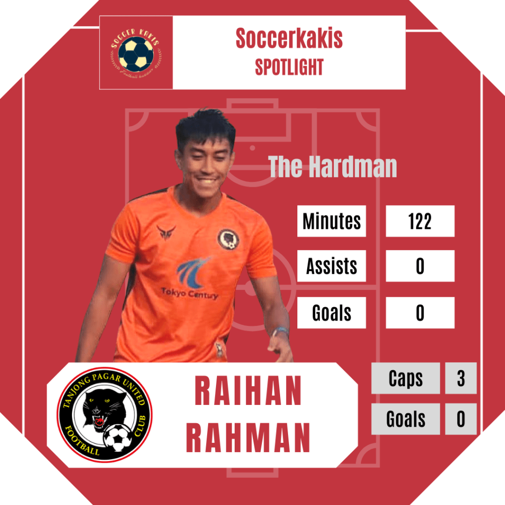 Raihan Rahman is your typical no-nonsense hardman. As a central defensive midfielder, he sweeps up loose balls but more importantly, bullies opposition attackers in the middle of the park. Limited to 3 first-team appearances this season, Tanjong Pagar could benefit from his sheer physicality in the center of the park. He simply needs to be fielded more and, quite honestly, I can thinking nothing better than a Raihan Rahman – Blake Ricciuto pairing in the middle of the park.
