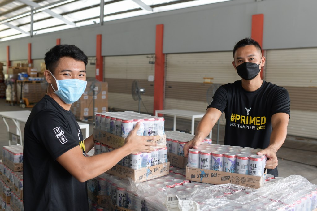 Well, each one of the 980 Coastal Dormitory residents will be receiving a few cans of H-TWO-O drinks and they will be receiving 2022 Tampines Rovers casual T-shirts (before the general public can purchase these items).