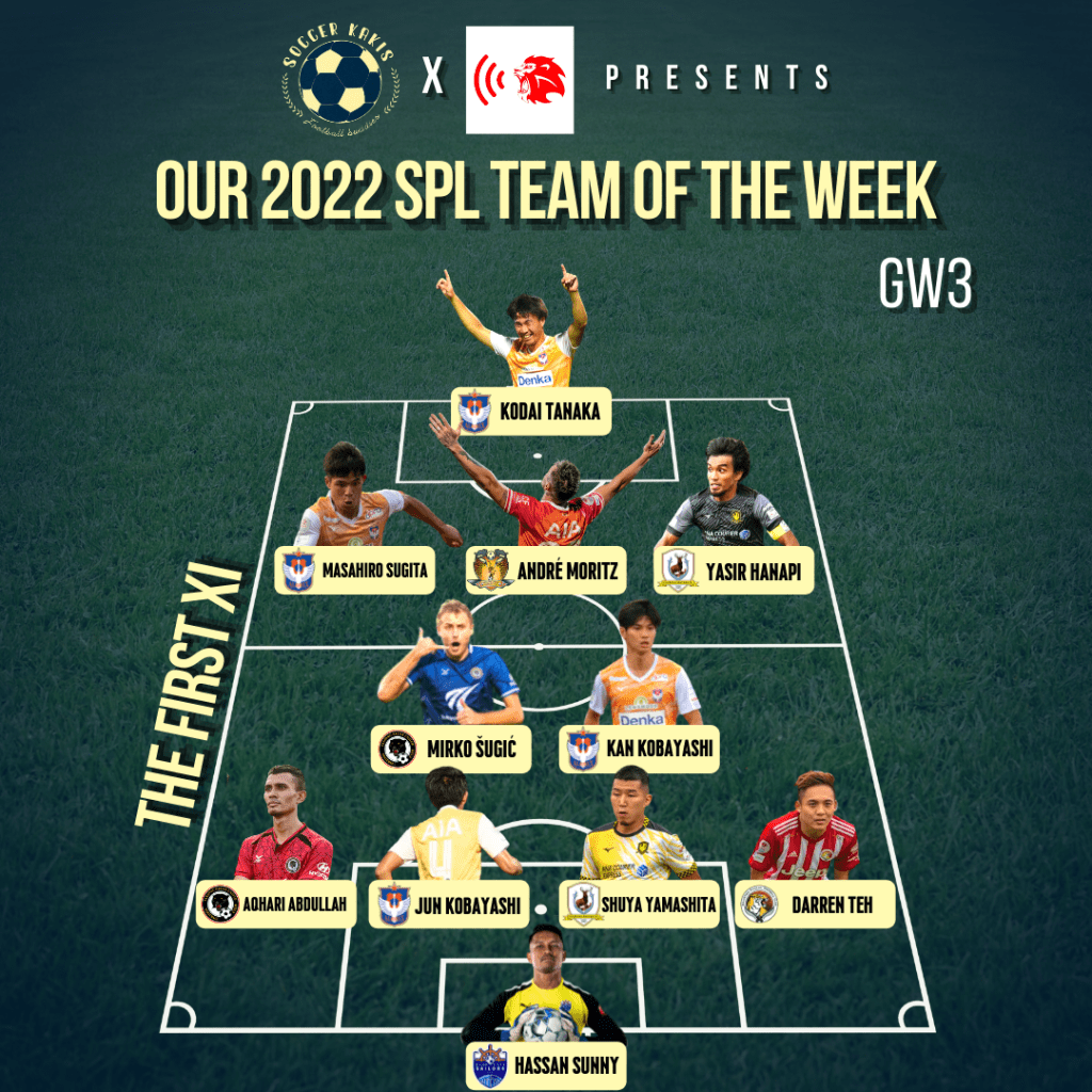 The weather may not have been the best this weekend, with the downpour delaying certain fixtures. But the goals also rained this Singapore Premier League Game Week, with a total of 19 goals spread across the four matches – also worth pointing out that it’s great to have all teams finally feature this weekend. For this edition of Team of the Week, we are joined by Jerome from SG Football Podcast. Jerome and I talk about the weekly events of the Singapore Premier League every Wednesday at 10pm [SGT] on the SG Football Podcast stream – you can tune in via their Instagram or Facebook page.